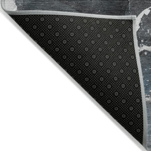 5′ X 8′ Gray and Black Abstract Washable Non Skid Indoor Outdoor Area Rug