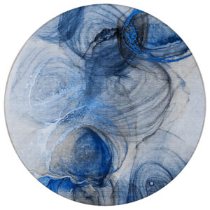 8′ Round Ivory Blue and Gray Round Abstract Washable Non Skid Indoor Outdoor Area Rug