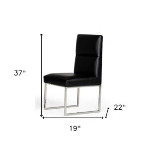 Set of Two Tufted Black And Silver Upholstered Faux Leather Dining Side Chairs