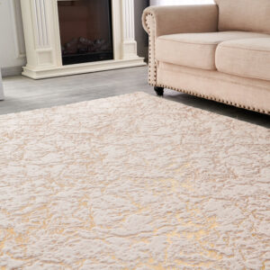 6′ x 9′ Pink and Gold Faux Fur Abstract Shag Non Skid Area Rug
