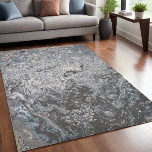 5′ x 8′ Blue and Gray Abstract Power Loom Area Rug