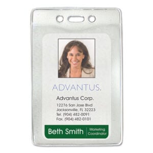 Security ID Badge Holders, Vertical, Pre-Punched for Chain/Clip, Clear, 2.63″ x 4.38″ Holder, 2.38″ x 3.75″ Insert, 50/Box