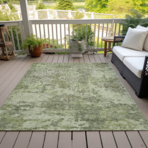 3′ X 5′ Artichoke Green And Ivory Abstract Washable Indoor Outdoor Area Rug