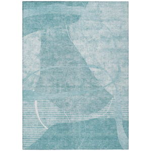 3′ X 5′ Turquoise Teal Blue And Ivory Abstract Washable Indoor Outdoor Area Rug