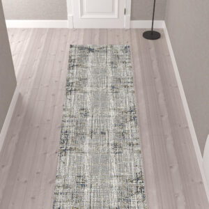 10′ Gray and Gold Abstract Power Loom Runner Rug