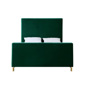 Hunter Green Solid Wood Queen Upholstered Velvet Bed