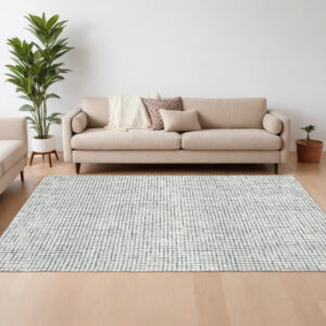 10′ x 14′ Gray and Ivory Wool Checkered Hand Hooked Area Rug