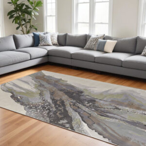9′ x 12′ Green and Brown Abstract Power Loom Area Rug