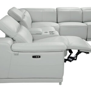 Light Gray Italian Leather Power Reclining U Shaped Seven Piece Corner Sectional With Console