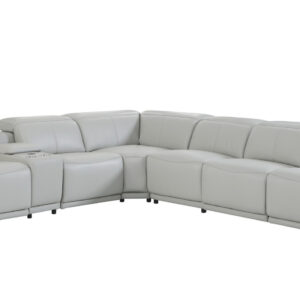 Light Gray Italian Leather Power Reclining U Shaped Seven Piece Corner Sectional With Console